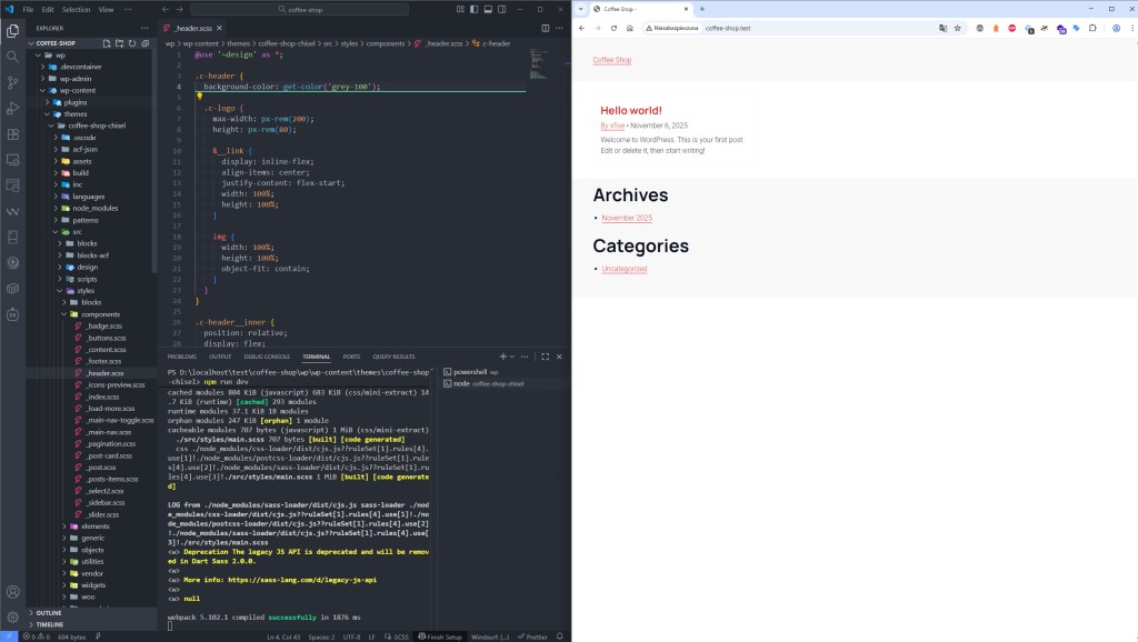 Craft fast and easy to maintain WordPress websites. Use the power and simplicity of Timber and Twig. Make your CSS scalable and maintainable with ITCSS. Get rid of tedious manual tasks with Chisel’s modern development workflow.